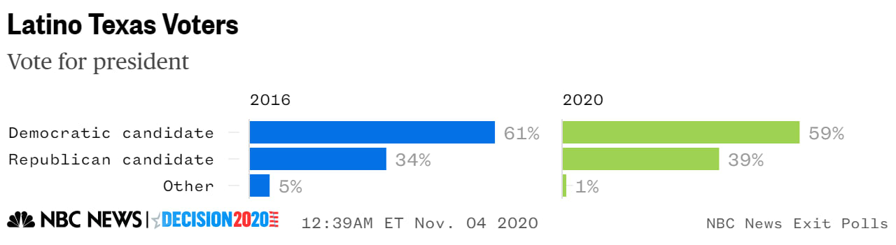 NBC News Exit Poll: In Texas, Biden is performing better among white voters than any Democrat in decades