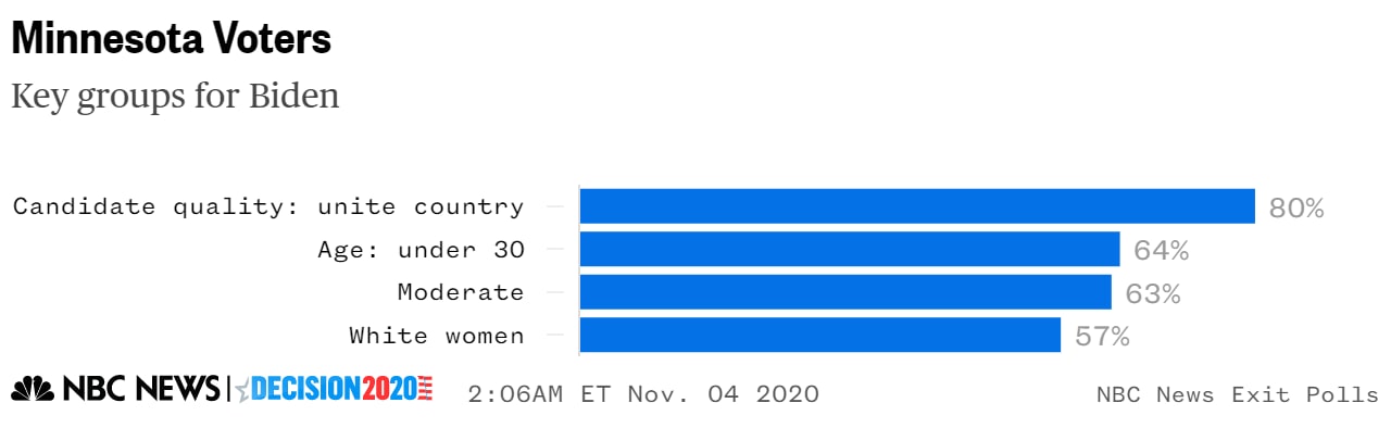 According to results so far from the NBC News Exit Poll of early and Election Day voters, this critical swing group is breaking for Joe Biden by a 17-point margin — 56 percent to 39 percent.