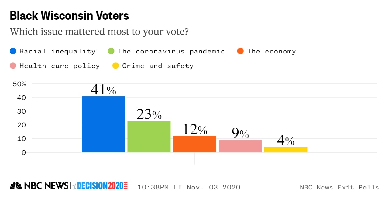 Only 11 percent of suburban white women said that crime was the issue that mattered most to their vote, about the same share who said racial inequality was the most important issue.