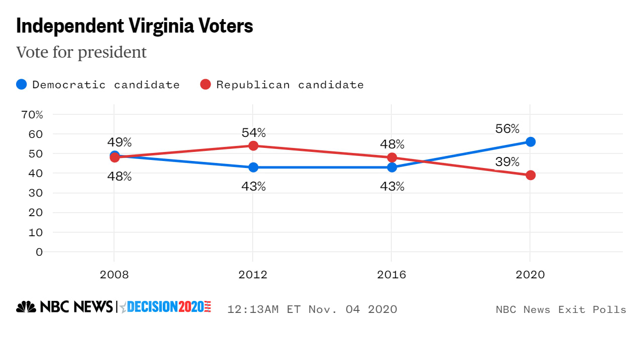 NBC News Exit Poll: Biden is ahead with independent voters nationwide