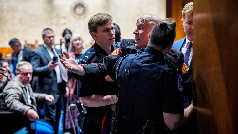 The Capitol Police statement called McGinnis "an unruly man who started to illegally protest during a hearing, put everyone in a dangerous position by violently resisting and fighting our officer’s attempts to remove him from the room."