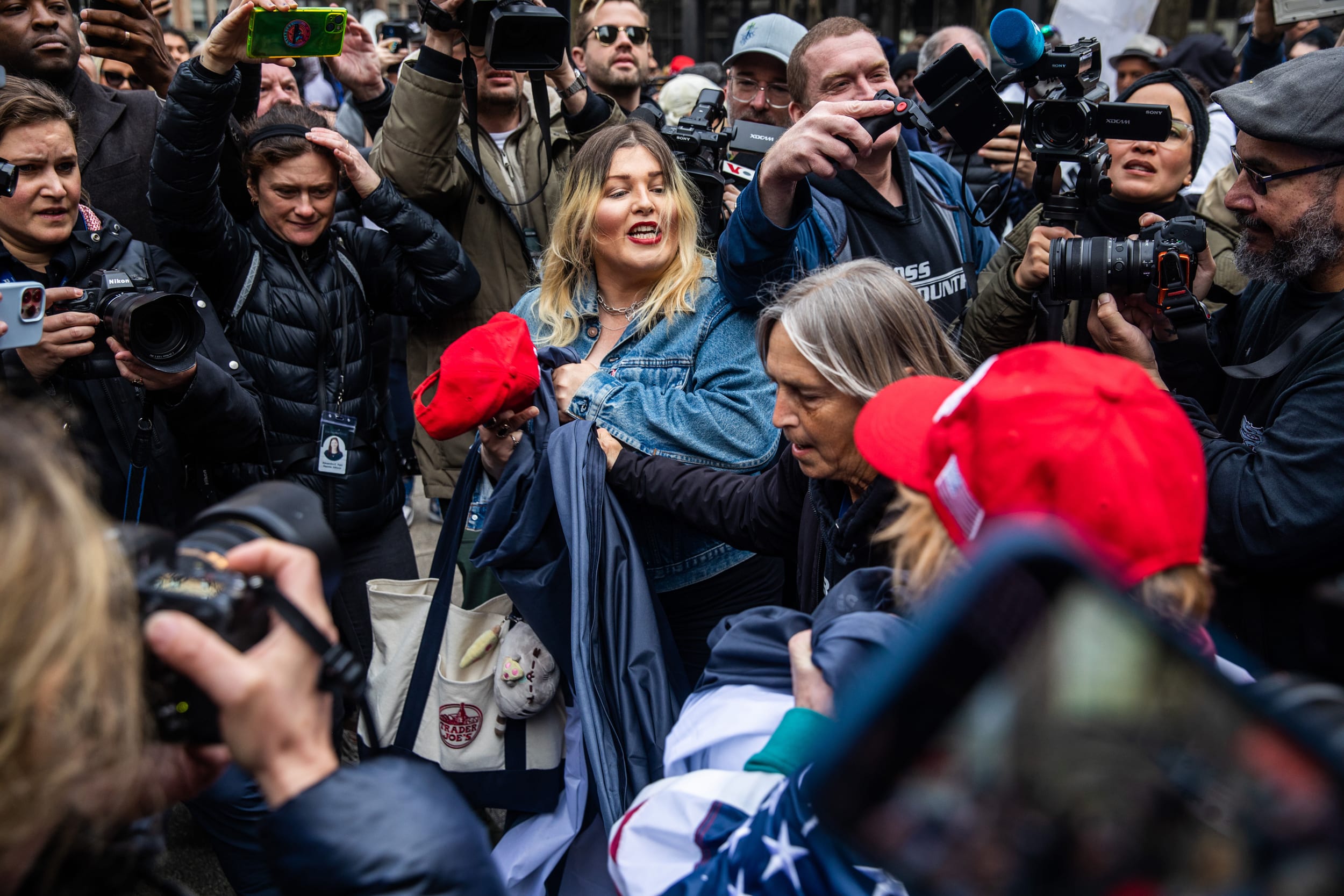 A small scuffle broke out between Trump supporters and detractors outside the New York courthouse.