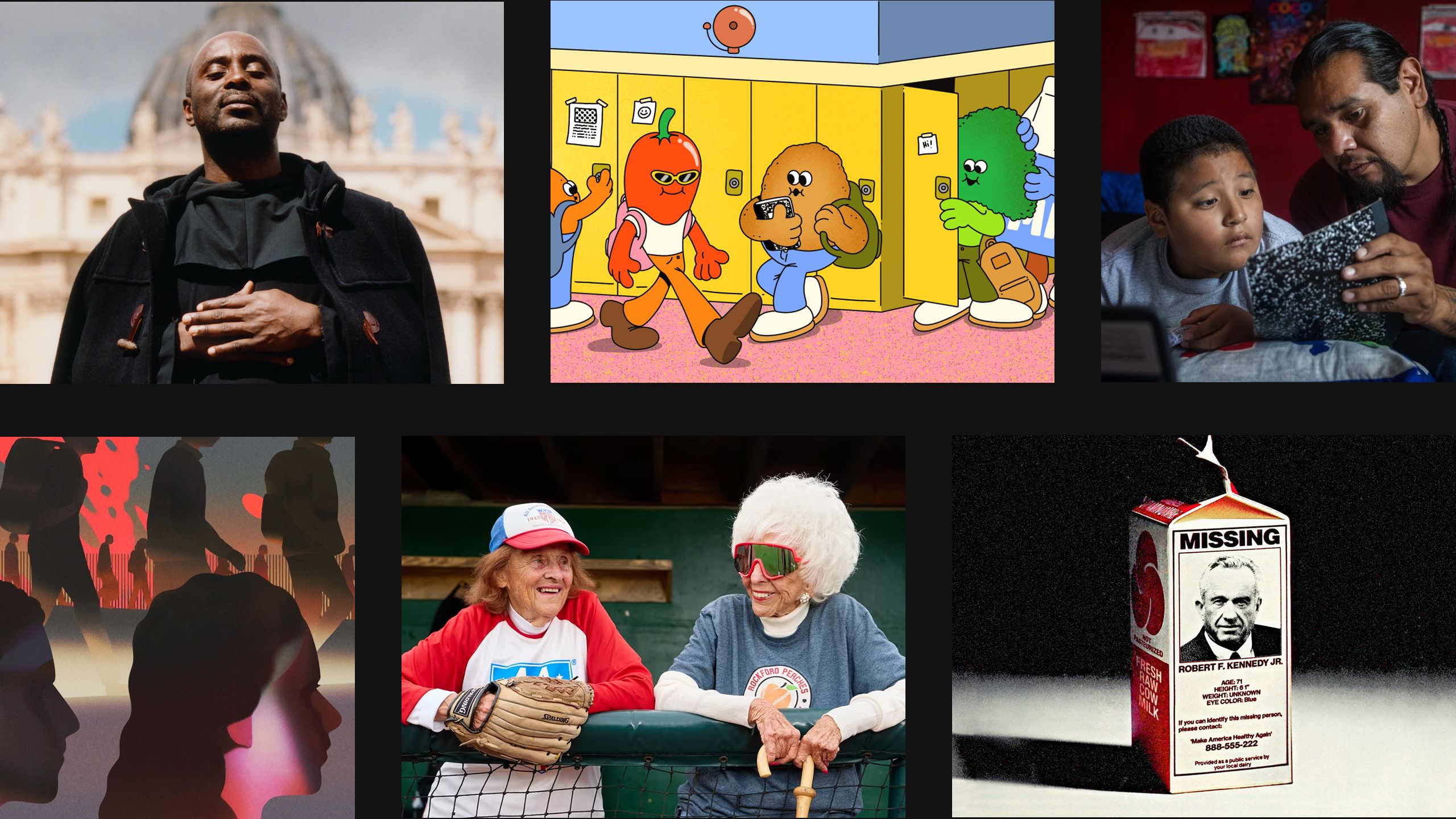 Our photographers on the ground captured a presidential military parade in D.C. and thousands of Catholic pilgrims in Vatican City, showed life in an R.V. and poignantly depicted the stories of those abused and ignored by church leaders, correctional officers and Jeffrey Epstein. Meanwhile, our illustrators conceptualized the failures of self-driving cars, Health Secretary RFK Jr’s relationship to raw milk and the trend of spicy lunches at schools. And yes, Gen Z is staring at you.