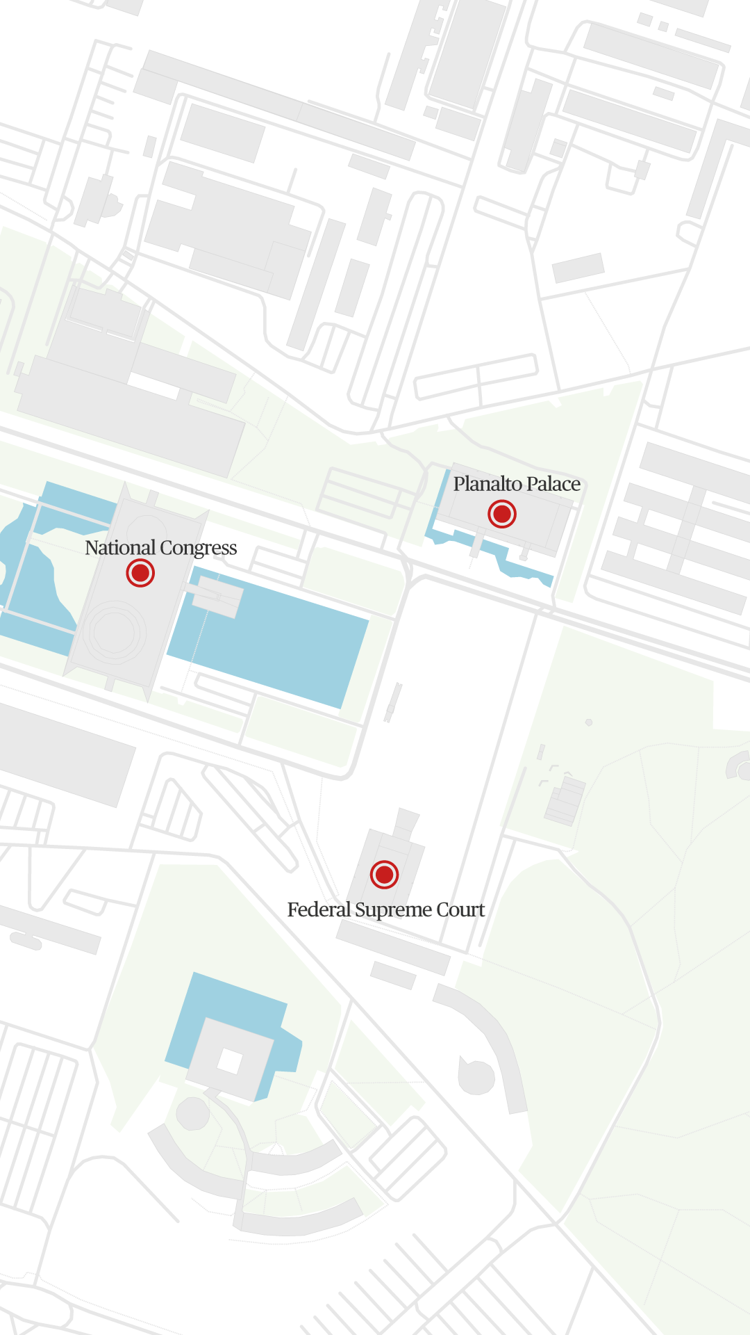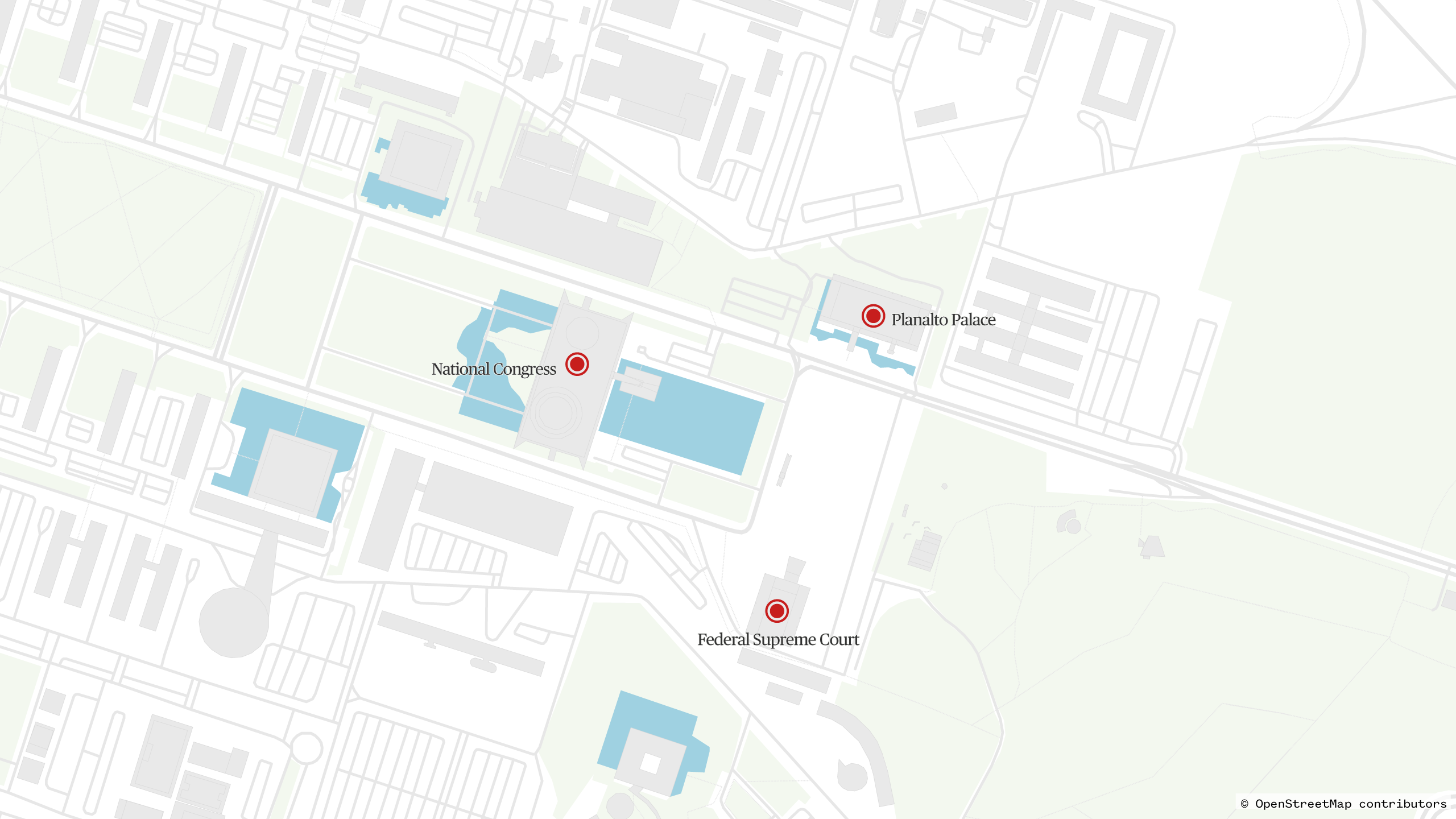 The single plaza is home to Brazil’s three branches of government: the National Congress, the Supreme Court and the presidential Planalto Palace.
